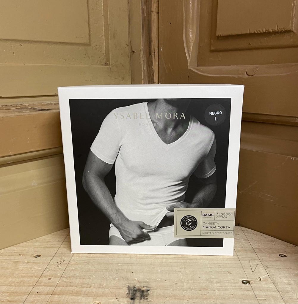 Camiseta interior manga corta-negra T/L Cuello en pico